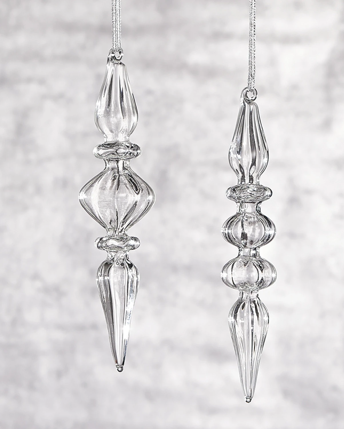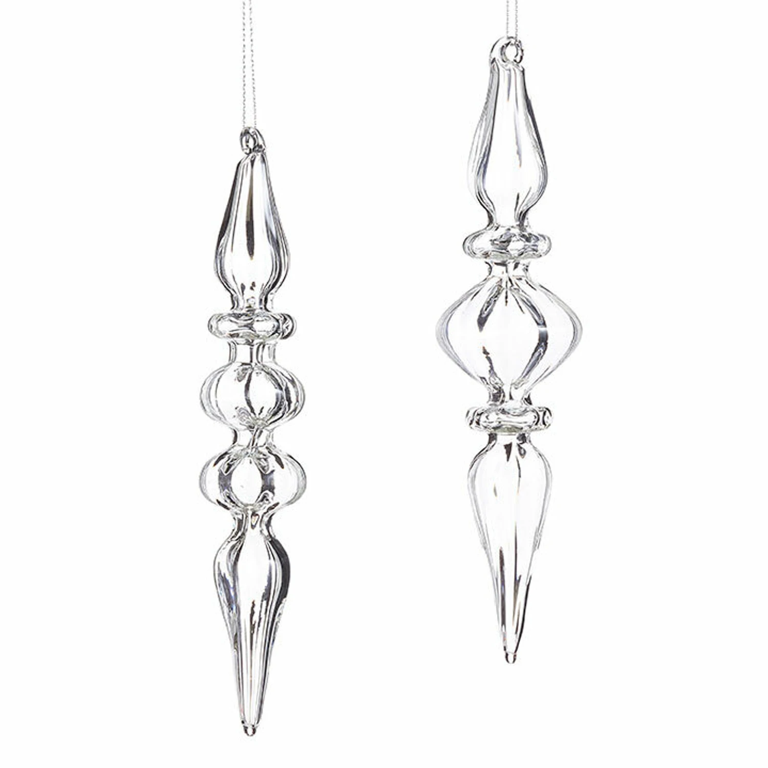 These stunning clear glass finials are sure to look perfect on your Christmas tree glinting and reflecting the light from your lights. These are also great for those of you who love the sparkle, but dislike the pesky glitter that comes with it. Each sold individually. Made by Raz Imports. Made of glass. Dimensions: 8″ tall. Item #: 4022819