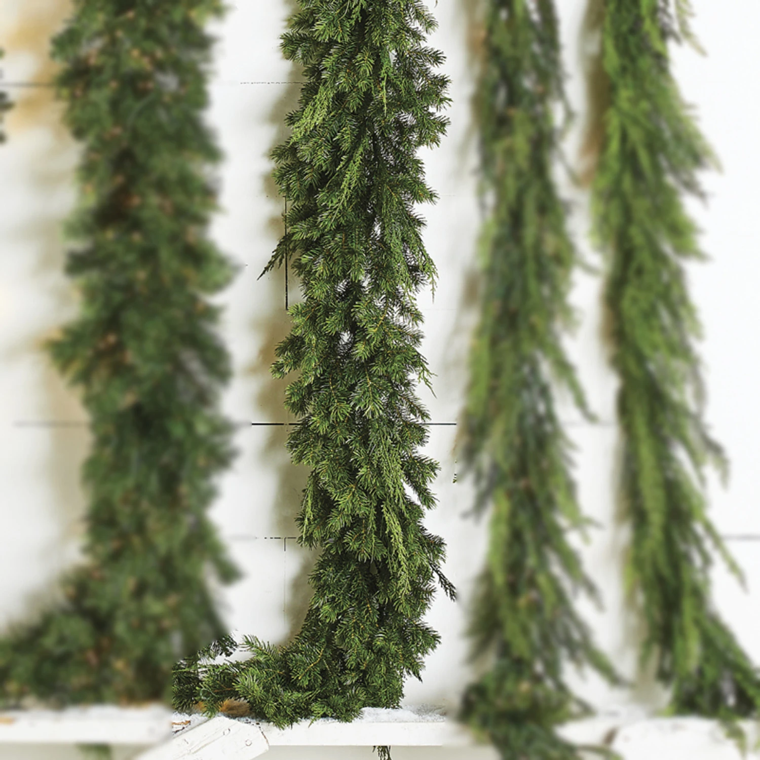 Get your mantle ready for the holidays! This garland features 9 feet of fluffy cedar branches that looks real! Made by Raz Imports. Made of pvc. Dimensions: 9′. Item #: G4152043